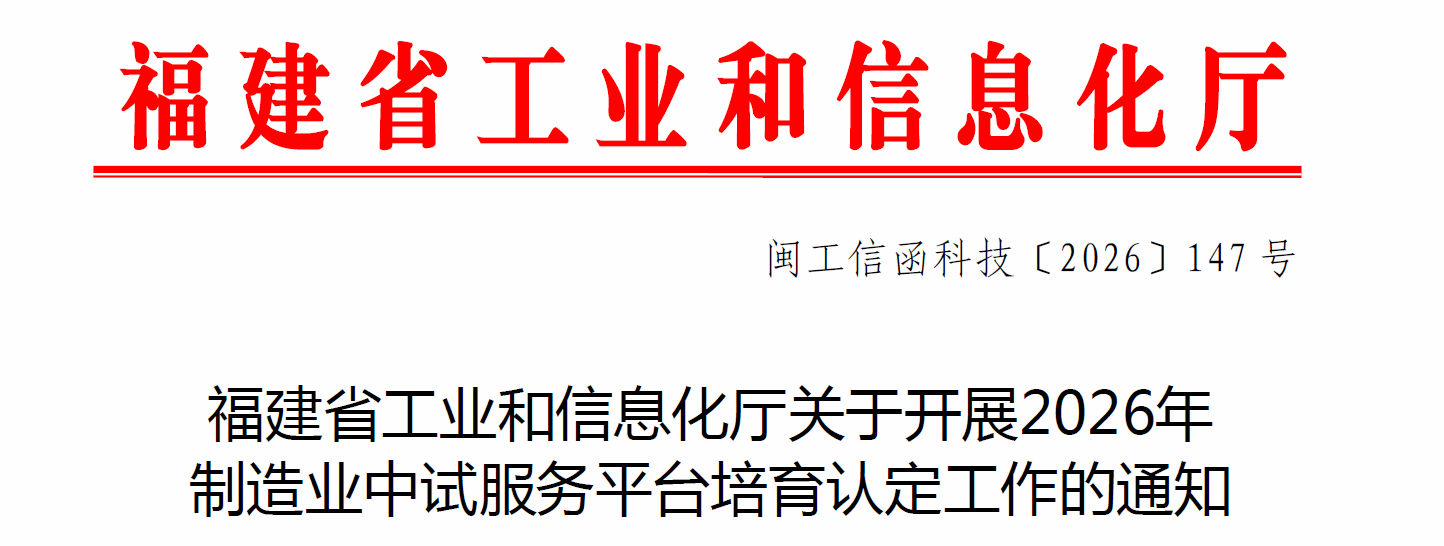 转:福建省工业和信息化厅关于开展2026年制造业中试服务平台培育认定工作的通知