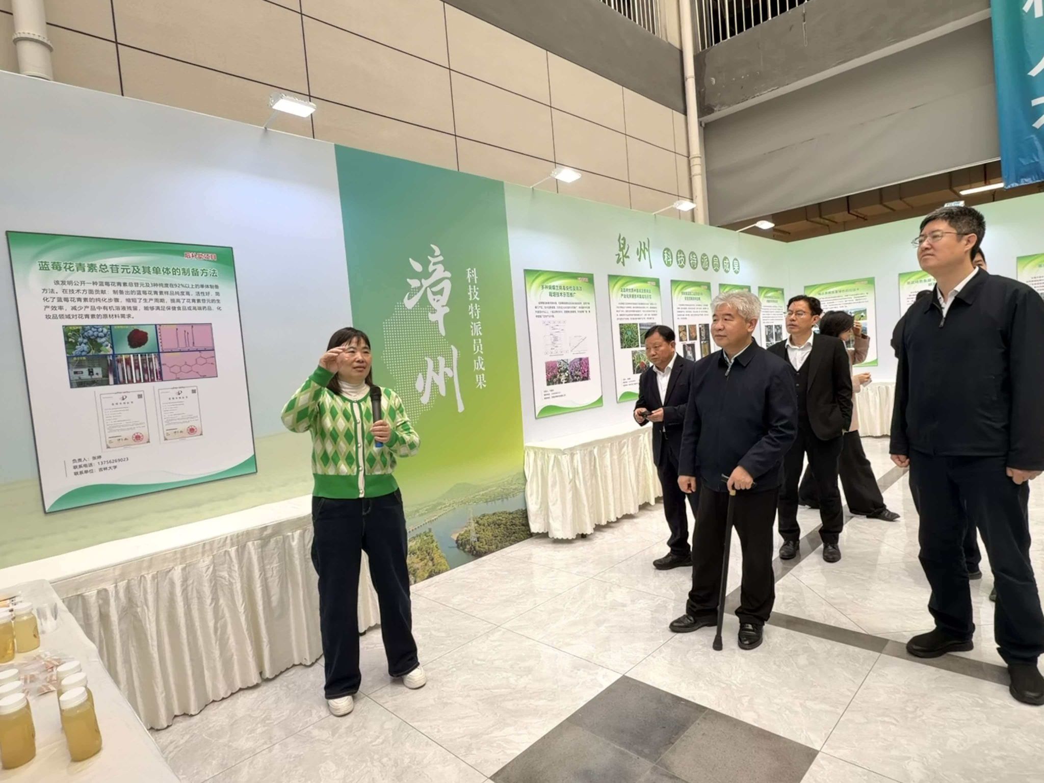 在主会场,我校曹芳副教授代表其科技特派员团队,就科技特派员后补助项目成果《低GI健康烘焙系列产品》进行了现场推介路演;在成果展区,曹芳副教授向省科技厅、南平市政府、福建农林大学等单位的领导和相关人员介绍了团队开发的低GI饼干、面包、饮料等产品,获得一致认可。