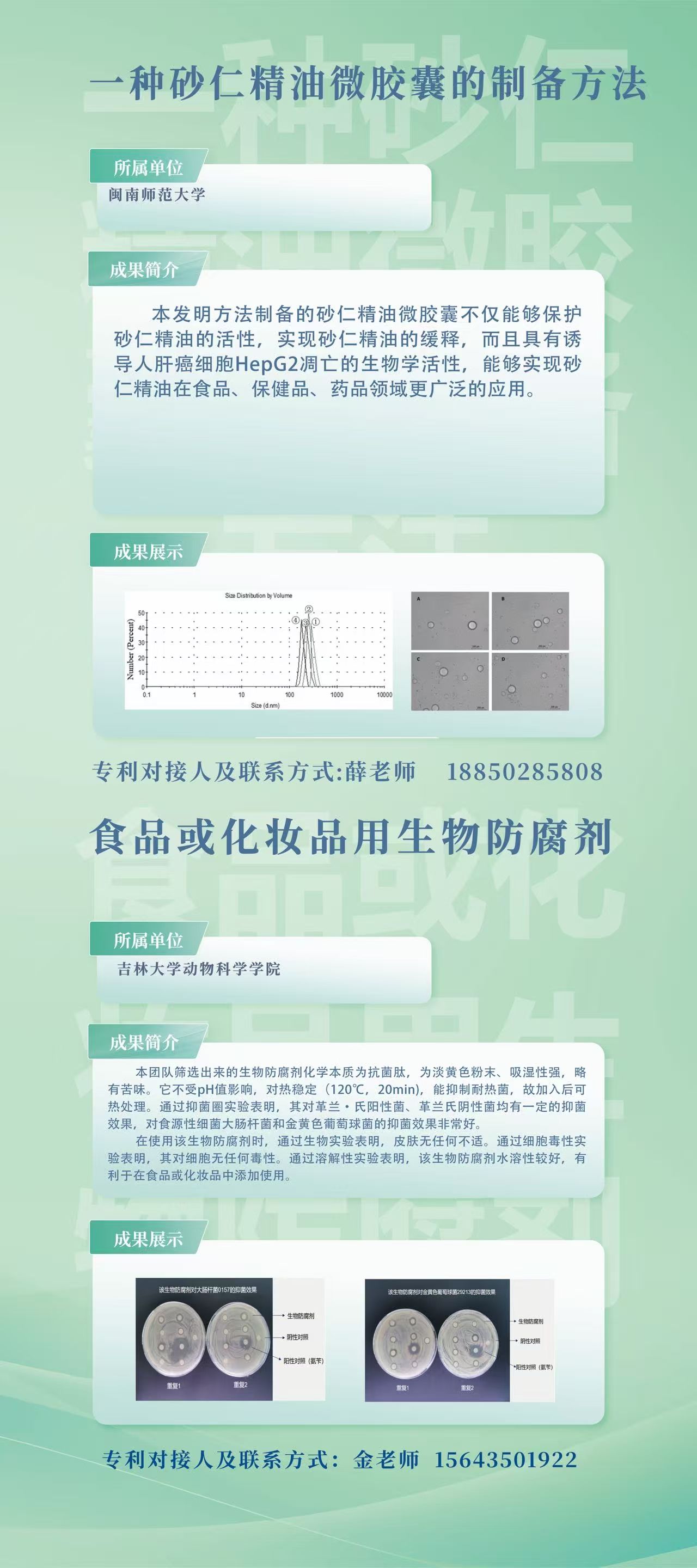 会上,我校集中展示推介了多项专利成果,包括薛钰教授的《一种Ⅱ型糖尿病斑马鱼模型的构建方法及其应用》、薛山教授的《一种砂仁精油微胶囊的制备方法》等。这些成果立足科研前沿,紧密结合泛健康产业实际需求,受到参会企业的高度关注。