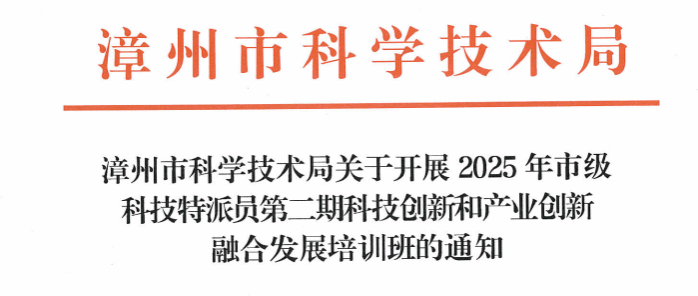 漳州市科学技术局关于举办2025年科技特派员 第二期科技创新与产业创新融合发展培训班的通知